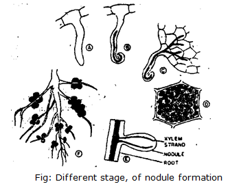 It is most important nitrogen fixation. Its mechanism is fully known. A large number of leguminous plants like bean, pea, gram and soybean develop root nodules. All the plants of family Papilionacae develop nodules. 30 per cent of the species belongs to Caesalpinacae. Leguminous plants increase the soil fertility. German Bacteriologist, Beijerinck identified that Rhizobium infect the root system and they develop nodules.