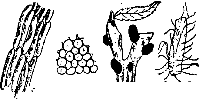 - •lamydospores: Sometimes, individual cells of the hypae become thick walled. These cells behave as spores. Such spores ire called chlamydospores.