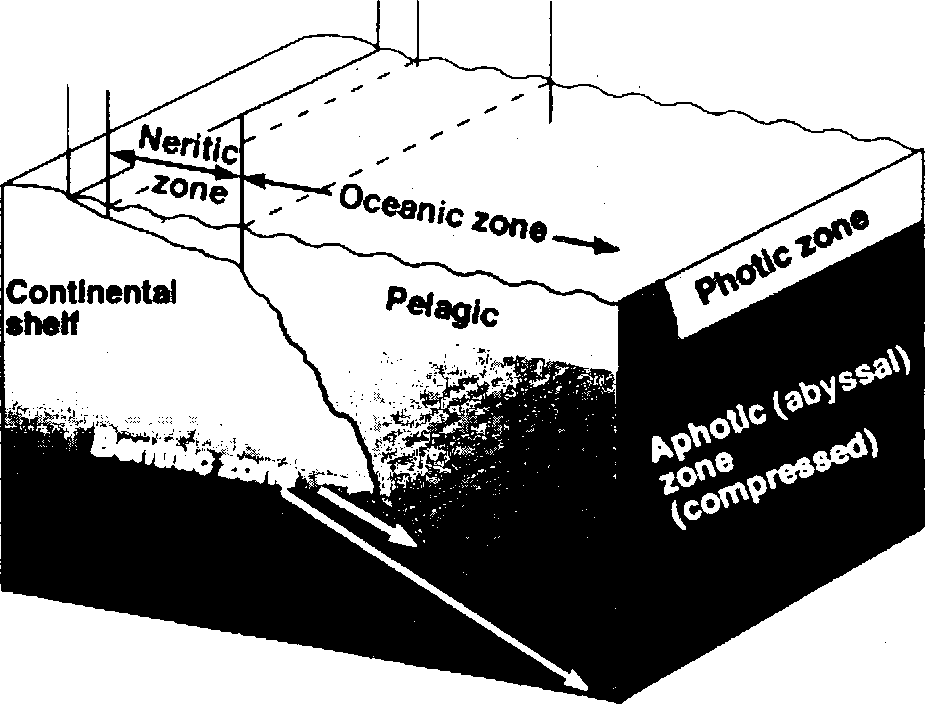 3. Oceanic zone: The zone below the continental shelf reaching very great depths is called oceanic zone.