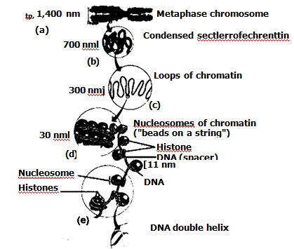chromosomes during mitosis. The beaded string can coil tightly with the help of histone HI. It makes a cylinder 30 nm in diameter. It is called solenoid.