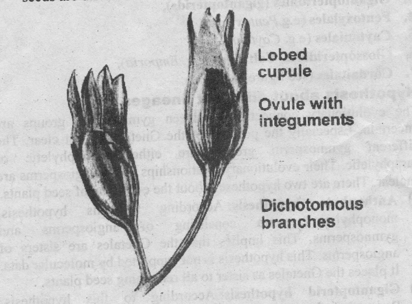 a)   Anthophyte hypothesis: According to this hypothesis, monophyletic group consisting of angiosperms and gymnosperms. This implies that the Gnetales are sisters of angiosperms. This hypothesis is not supported by molecular data. It places the Gnetales as sister to all remaining seed plants.