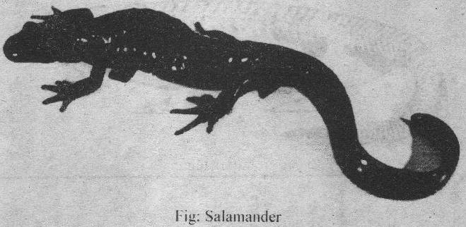 Development: Eggs are fertilized as they pass through the cloaca. They are deposited singly or in clumps or in strings. Larvae are similar to adults but smaller. Larvae possess external gills a tail fin larval dentition and a rudimentary tongue. The aquatic larva undergoes metamorphoses and forms a terrestrial adult. Many other salamanders undergo incomplete metamorphosis. They are paedomorphic. A phenomenon in which larva ecome sexually mature while still showing larval characteristics is called paedomorphosis.