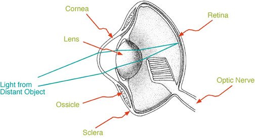 Vision is the dominant sense in most reptiles, and their eyes are similar to those of amphibians. Upper and lower eyelids, a nictitating membrane, and a blood sinus protect and cleanse the surface of the eye. In snakes and some lizards, the upper and lower eyelids fuse in the embryo to form a protective window of clear skin called the spectacle. Some reptiles possess a median (parietal) eye that develops from outgrowths of the roof of the optic tectum (midbrain). In the tuatara, the median eye is complete with a lens, nerve, and retina. In other reptiles, the median eye is less developed. Skin covers median eyes, which probably cannot form images. They can, however, differentiate light and dark periods and are used in orientation to the sun. Fig. 2.28
